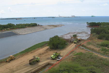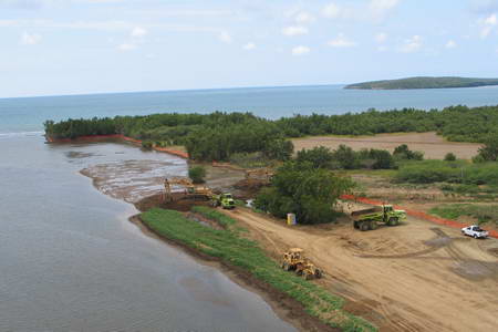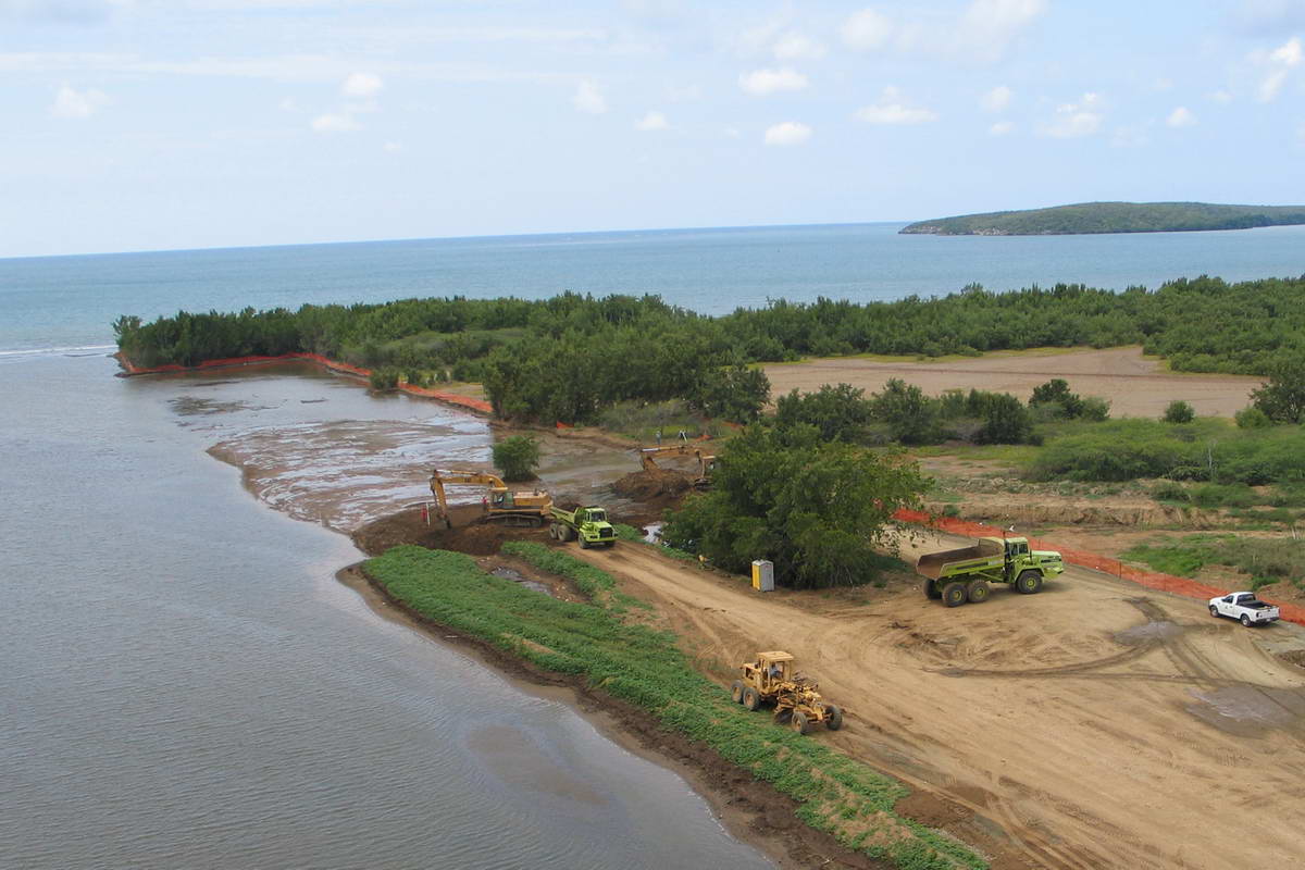 - Excavation and construction of diversion channel.