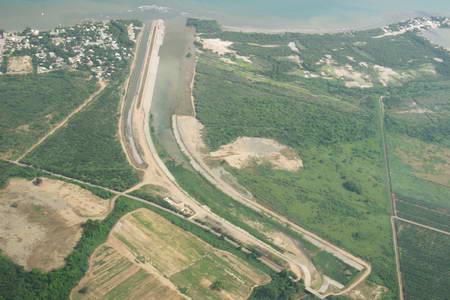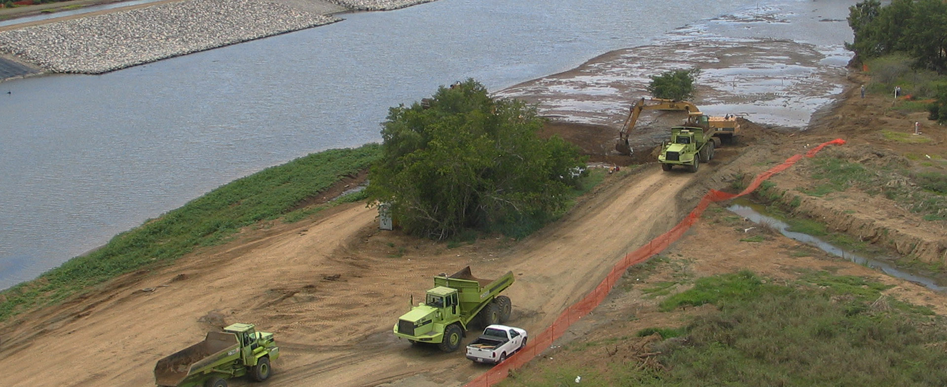 - Excavation and construction of the main river channel.